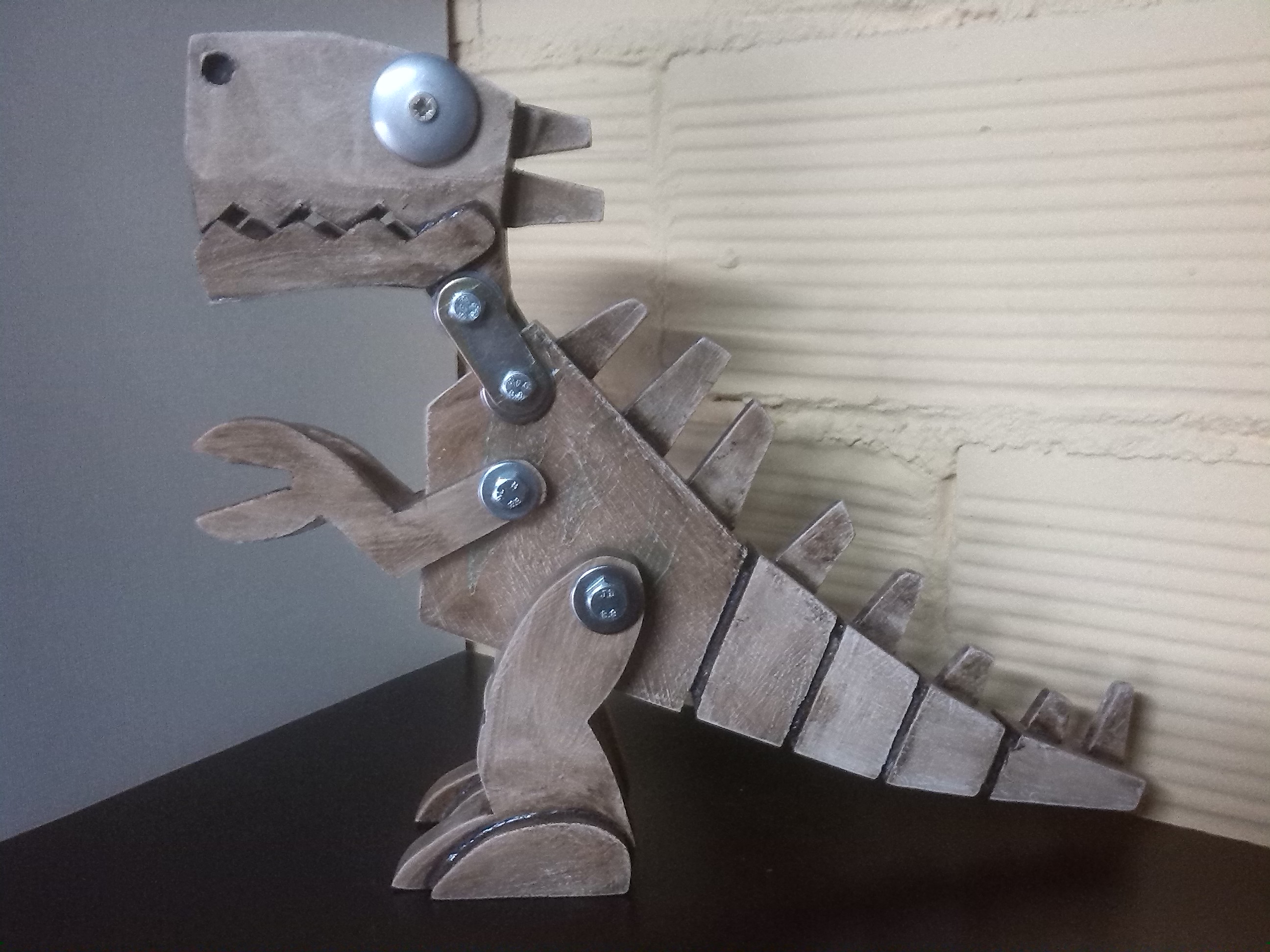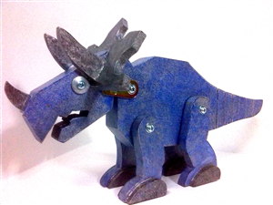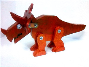 Tras el anguloso y aparentemente sencillo diseño de los dinos realizado por Carlos, se esconden muchas horas de trabajo delante del ordenador. Para conseguir dar con una forma reconicible para todos, y que a la vez se adapte a la perfección al material con que se va a fabricar, hay que tener muchas cosas en cuenta y estar pendiente de todos los detalles. Desde la manera de cortar las diversas piezas de que se compone cada dino, pasando por el movimiento que tendrán o los tornillos que se usarán para montarlos.